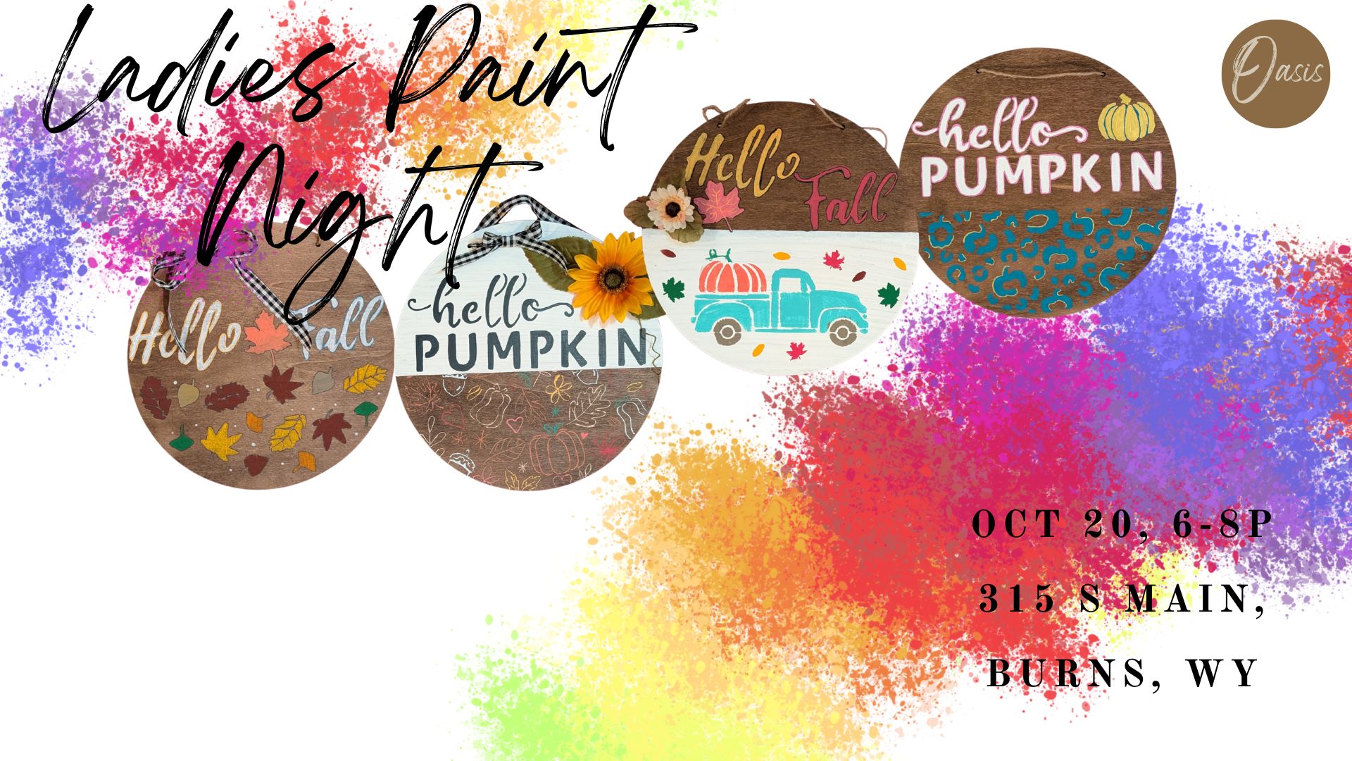 Join us on Monday October 20th at 6p for a fall themed Ladies Paint Night hosted by Oasis. We have a great painting planned, along with light snacks and a fantastic guest speaker.